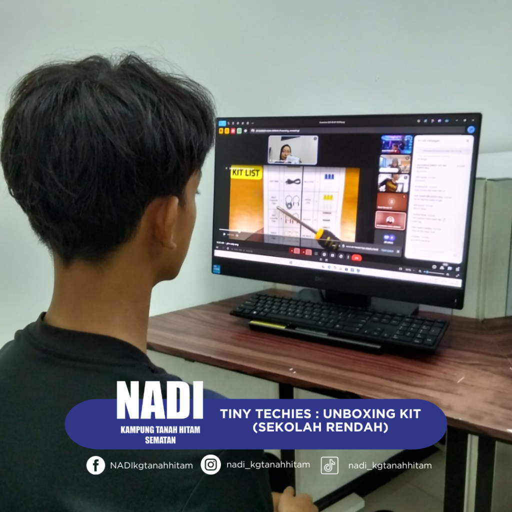 Pengenalan kepada konsep asas Internet of Things (IoT). Sesi unboxing Kit Tiny Techies yang merangkumi sensor, papan litar, modul WiFi dan komponen elektronik asas. Demonstrasi ringkas sambungan dan pengendalian kit menggunakan platform pembelajaran digital. Perkongsian projek mini IoT yang boleh dibangunkan menggunakan kit tersebut. Sesi soal jawab bersama fasilitator.